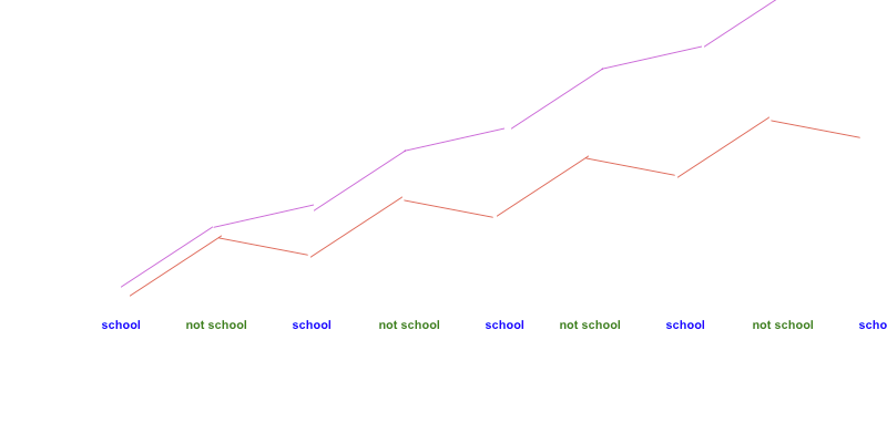 The key point is that the gap between word-rich and word-poor increases over time regardless of school. The work done in school to improve vocabulary will disproportionately benefit children from conversational, word-rich homes. Their vocabulary will solidify and consolidate; the word-poor fall back again and again.