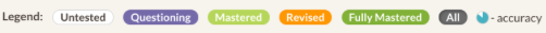 In Zip and Vocab, each item (word, phrase, phoneme...) has a state. The 5 states are: untested, questioning, mastered, revising, and fully mastered. You may have seen this in the dashboard when you click on a learner's progress bar.