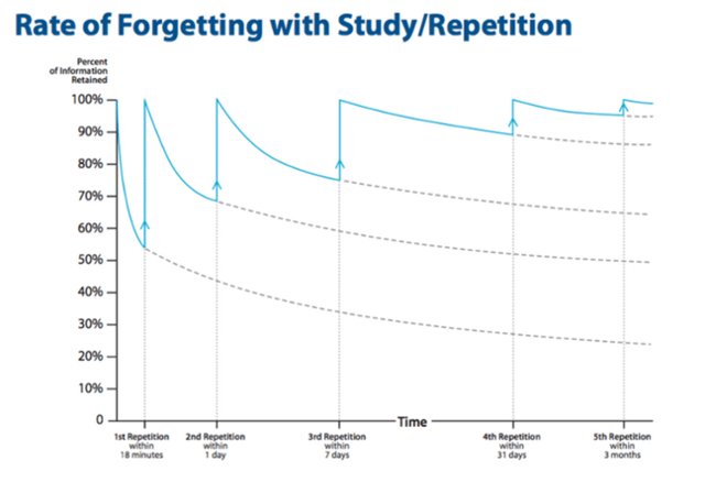 This process is designed to interrupt the forgetting curve as per the famous image derived from Ebbinghaus' work on memory. You can read more about this here.